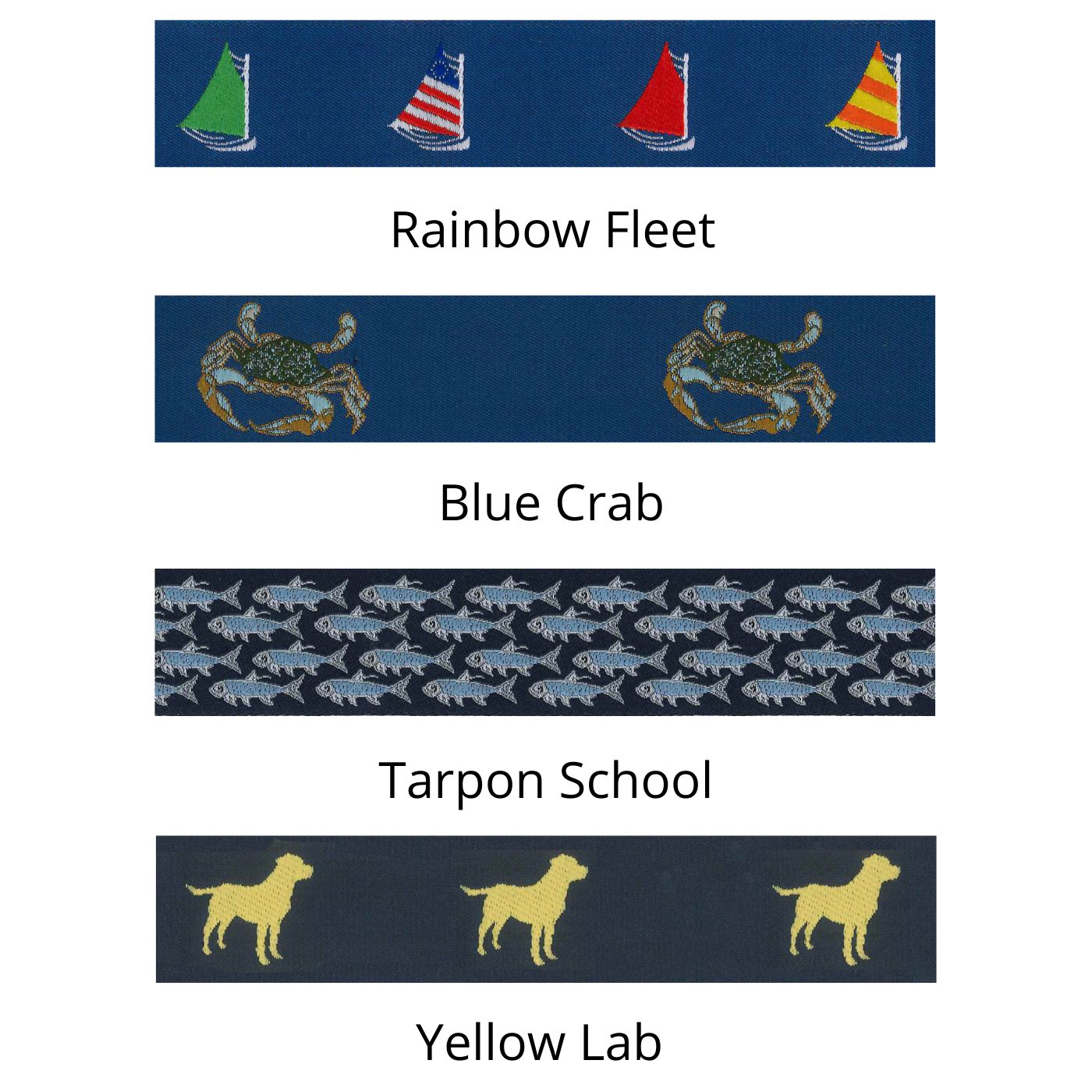 - 1" grosgrain ribbon on 1 1/4" cotton woven canvas backing