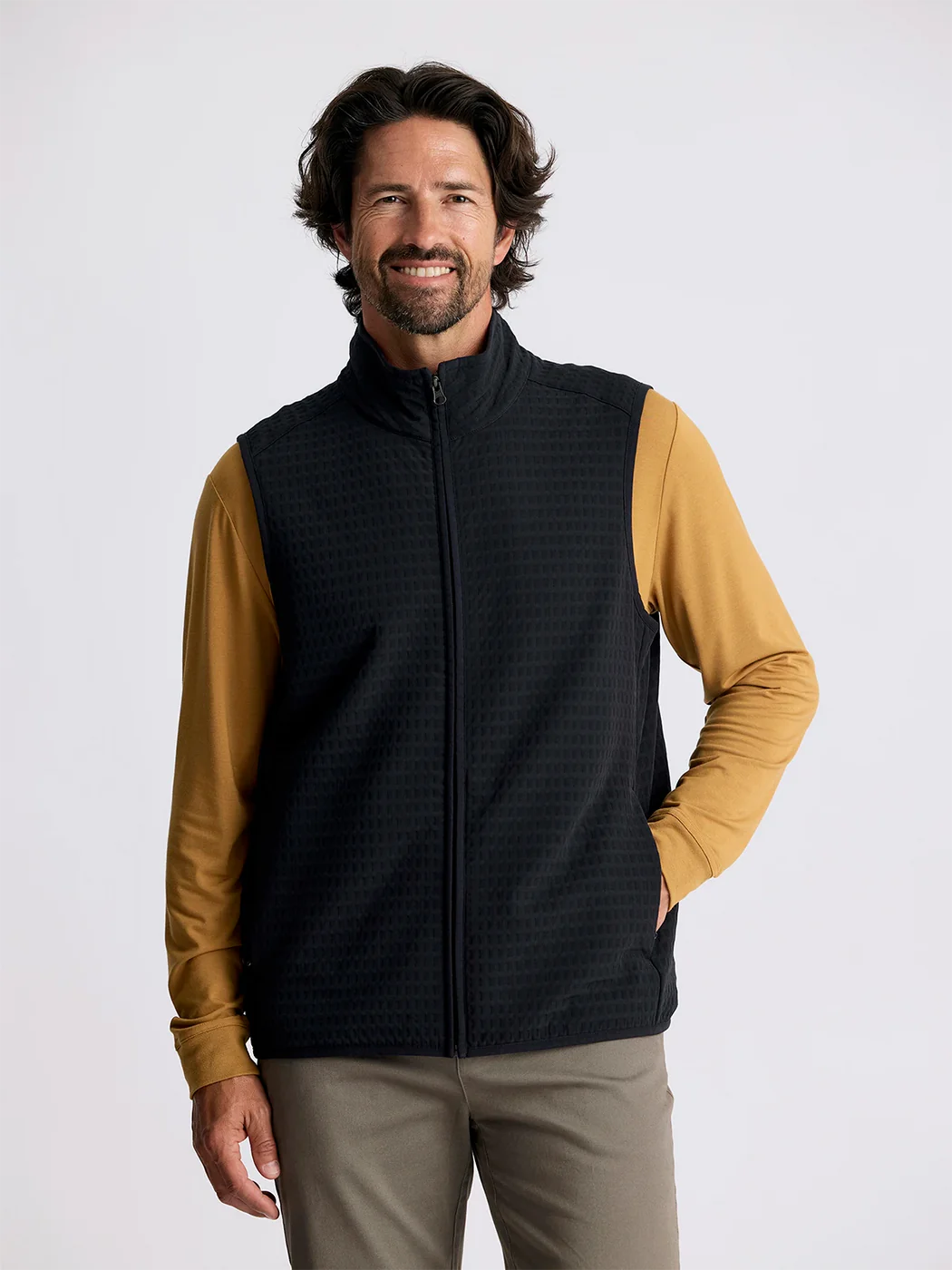 The Men's Gridback Fleece Vest is built for action with its weather defying technology and cozy-soft fleece interior. Lightweight and packable, it features a stretch woven shell for protection against wind and rain. Perfect for early morning boat rides or as a midlayer for chilly temps.