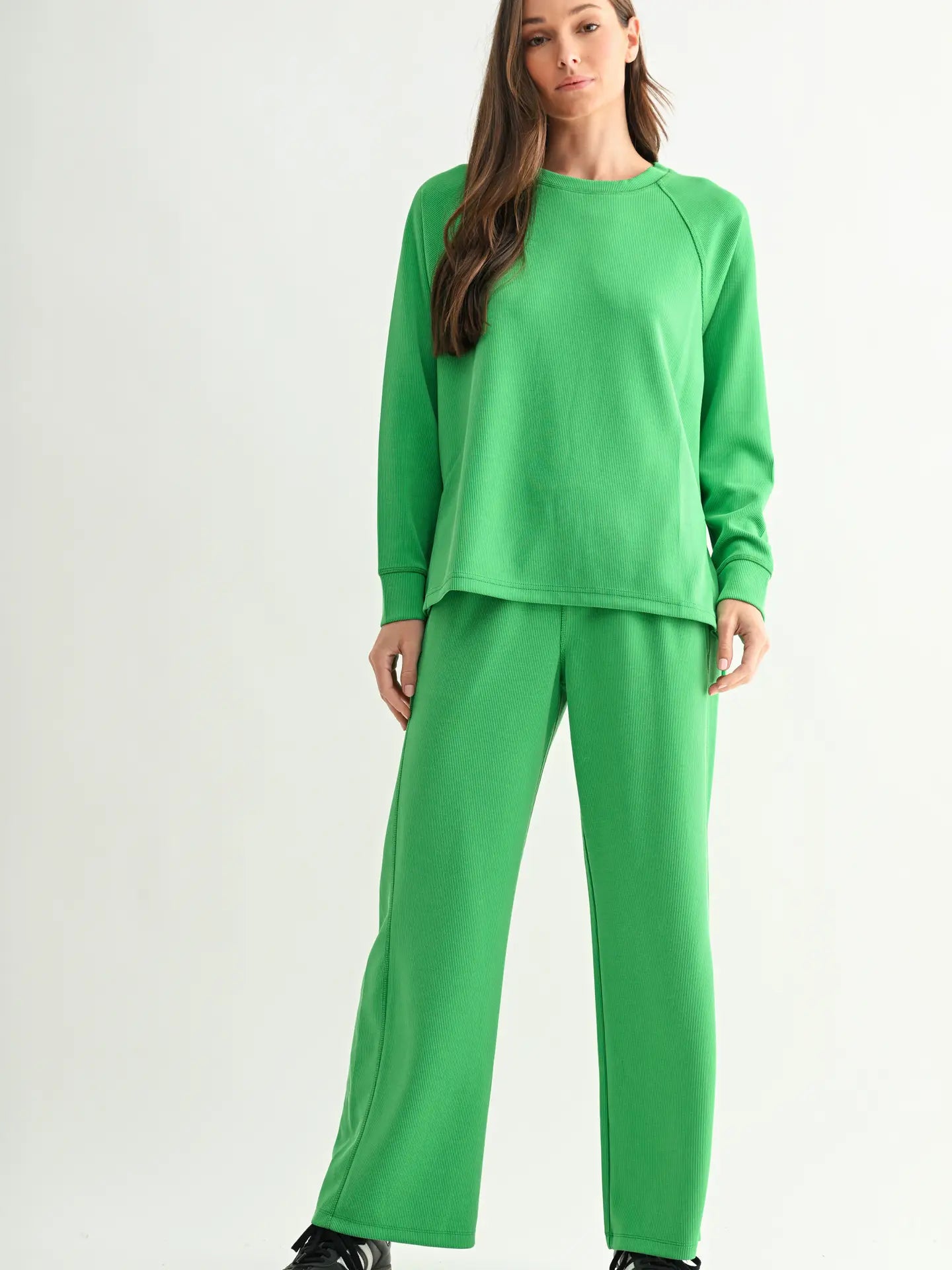 Effortless comfort meets modern style in this long sleeve raglan tee. Crafted from buttery-soft, sand-washed rib fabric with a luxe blend of polyester, modal, and spandex, it drapes beautifully without clinging. The classic crew neckline pairs with raglan sleeves and a high-low hem with subtle side slits—designed for real movement and all-day wear. Whether layered or solo, this is the tee you'll reach for again and again.